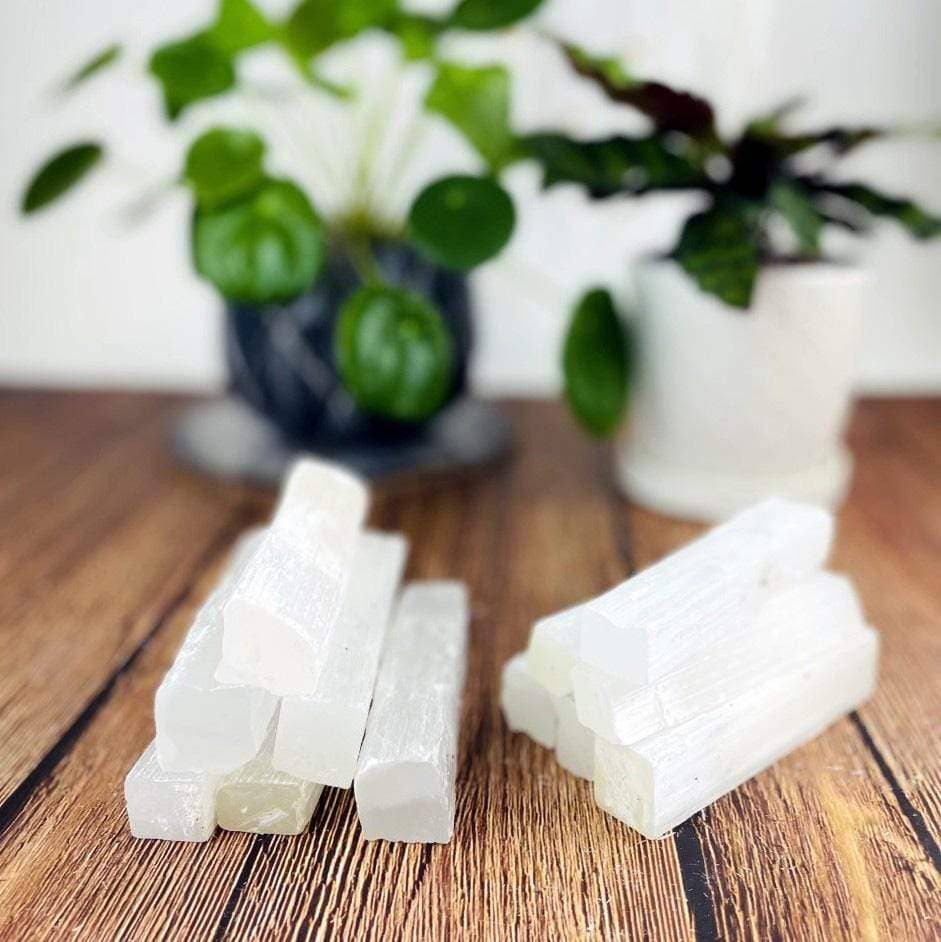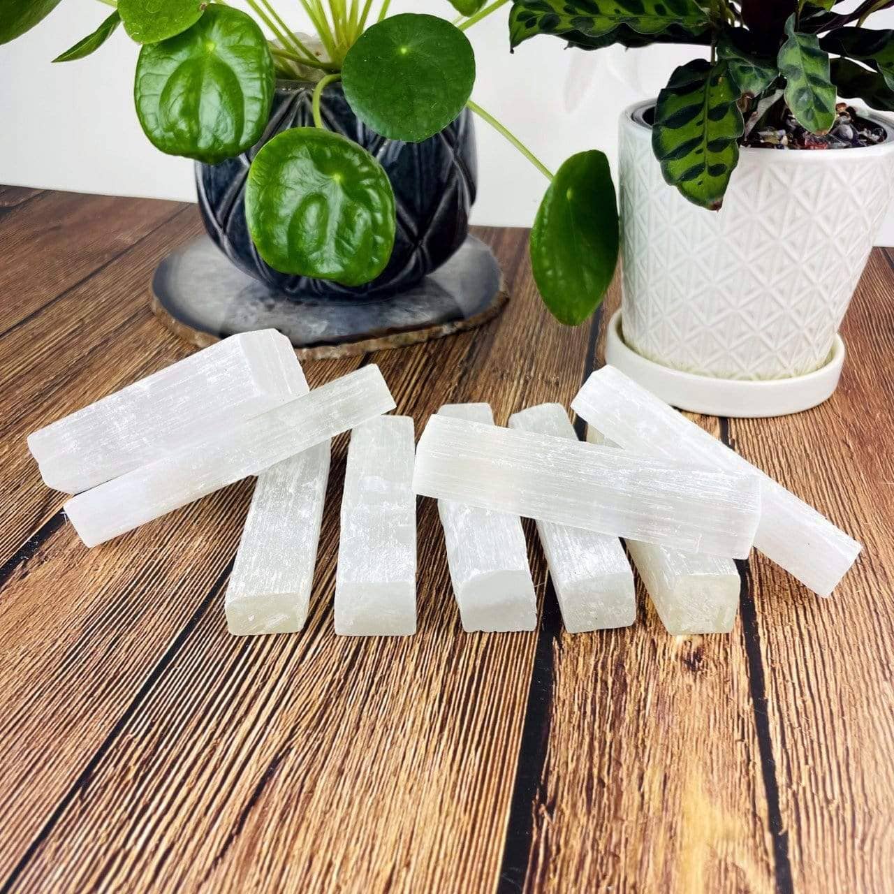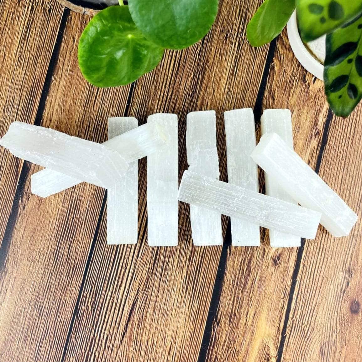 This listing is for ONE (1) Selenite Rough Stick Cut Square 10kg BOX -10cm - 4" Selenite Bars.Each stone will vary slightly in size and characteristics. These Selenite rods have square ends but some may be a little longer or thicker due to them being a natural stone. They measure approx.: 4" x .75"x .75"thick Hand cut so may be thicker or thinner weight varies - .50kg - 0.100 kg each Great to use for crafting, meditation, spiritual practices and wire wrapping.